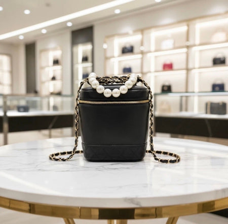 On Sale Quick Shop Chanel Vintage Chanel Vanity Bag Black Leather with Chain & Pearl Strap now $1,600.00 $1,800.00 11% off Quick Shop
