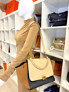 Measurements: H 23 cm x W 30 cm x D 16 cm. Handle drop 13 cm, strap drop 37 cm
