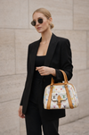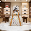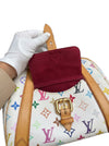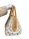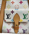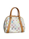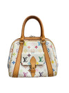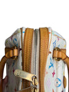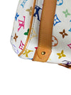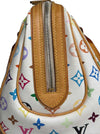 Crafted in white coated canvas adorned with the vibrant multicolore LV monogram, this structured top handle bag blends playful artistry with timeless Louis Vuitton craftsmanship. The natural vachetta leather trim adds warmth and heritage character, while the structured silhouette gives it elegant presence.